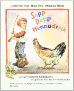 Lustige bayrische Kinderlieder ausgesucht und zusammengestellt von der Biermösl Blosn mit (sehr schönen) Bildern und Ausschmückung von Reinhard Michl und einem Vorwort von Gerhard Polt: (Auszug) ... Die Mehligkeit von Liedern wie “Laterne, Laterne, Sonne, Mond und Sterne“ haben einen solchen Eindruck auf sie gemacht, daß sie den echten Saft, die Würze, Buntheit und Gaudi, die in den alten bayrischen Kinderliedern steckt, auftischen. Kinder soll man vor musikalischem Griesbrei bewahren. ... Wie wahr !!!